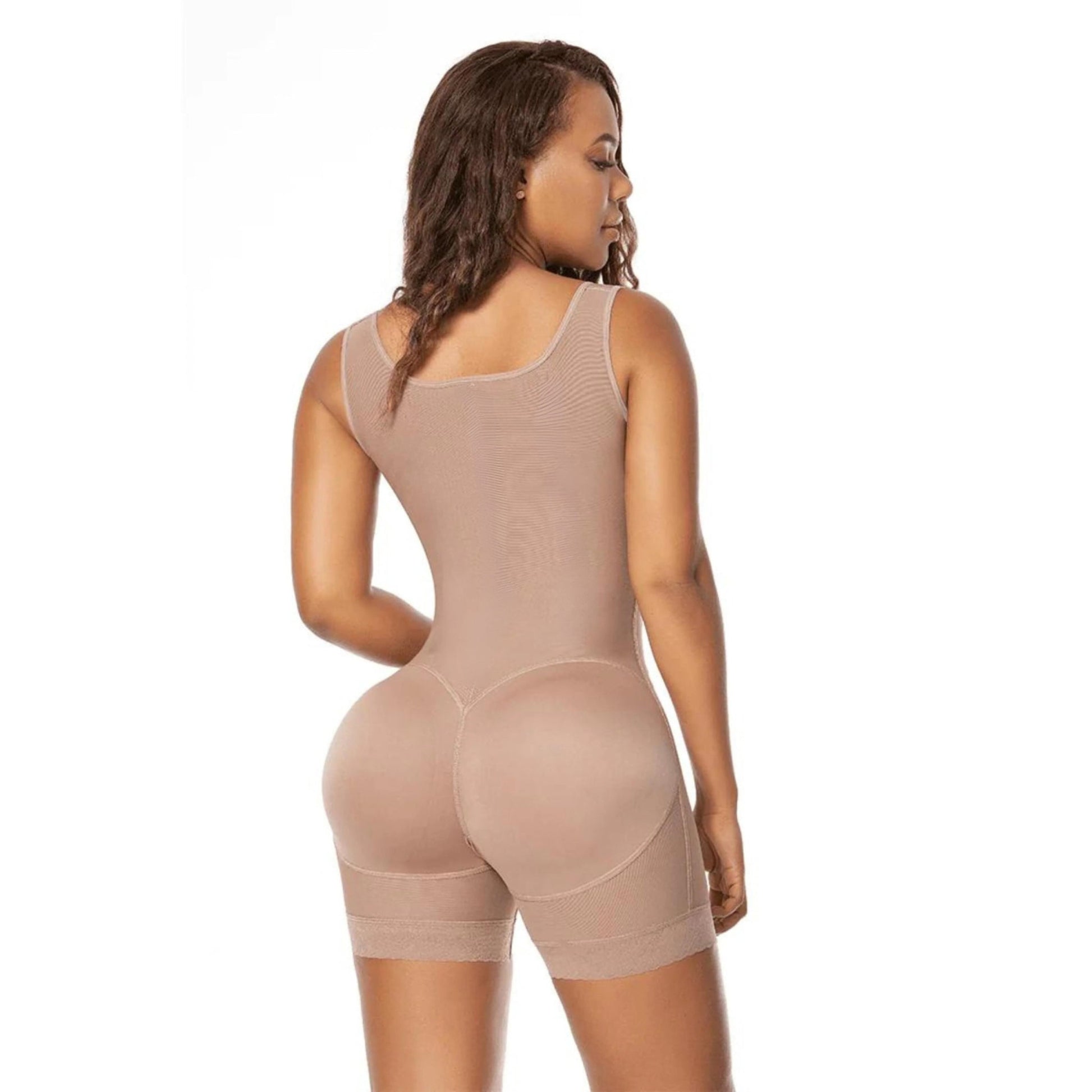 El encaje siliconado en el área de la pierna proporciona un ajuste mayor, y el diseño de senos libres ofrece mayor libertad y comodidad. También presenta una abertura perineal que permite ir al baño sin necesidad de retirar completamente la faja.